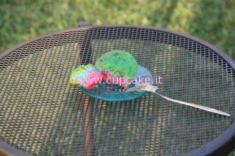 Una volta ottenuto il colore versate l’impasto nei pirottini di carta per cupcakes alternando strati di vari colori. Infornate il tutto e fate cuocere per 12 – 15 minuti.