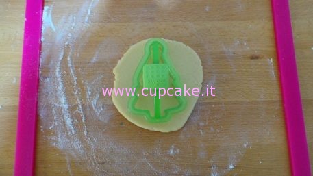 Stendete l’impasto usando due spaziatori con lo stesso diametro. In questo modo i biscotti avranno lo stesso spessore e lo stesso tempo di cottura. Potete usare 2 righelli in mancanza di altro. Appena steso l’impasto degli sugar cookies tagliate i biscotti con le formine.