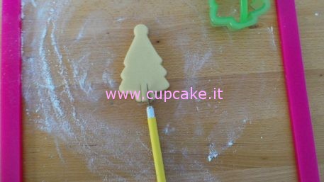 Adesso con un taglierino o un coltello incidete un rettangolo alla base del biscotti. Non fatelo troppo piccolo poichè potrebbe sparire durante la cottura, nè troppo grande in questo caso non sarebbe stabile sulla tazza. Rimettete i biscotti in frigo per 10 minuti in modo che l’impasto non modifichi la forma durante la cottura.